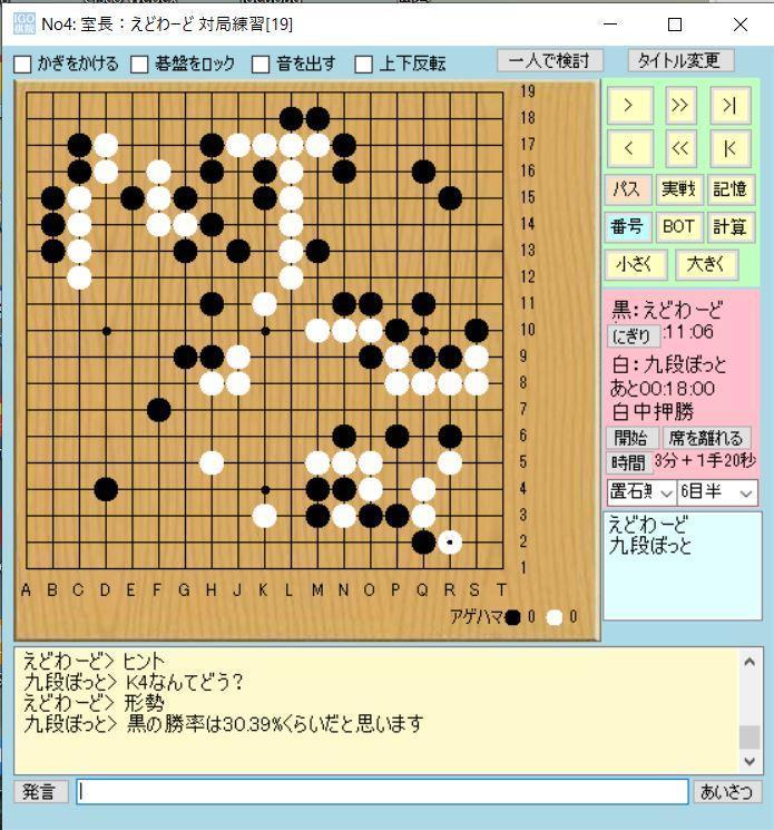 実はあまり使ったことがなく初心者なので九段ボットと対局して練習してみました。